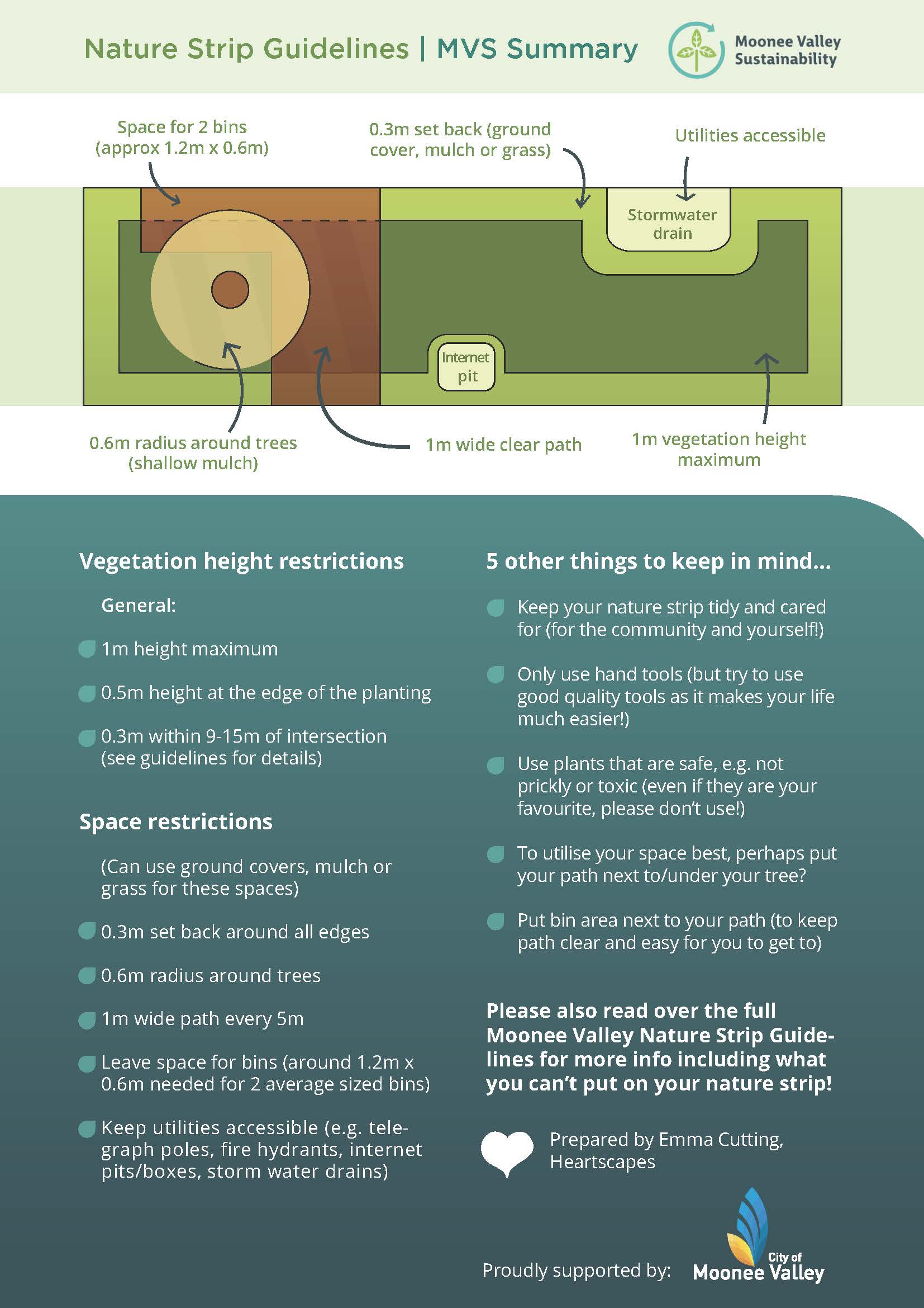 Moonee Valley City Council have developed guidelines for Nature Strip Landscaping. There are some key things to consider when you are choosing plants and designing your nature strip.